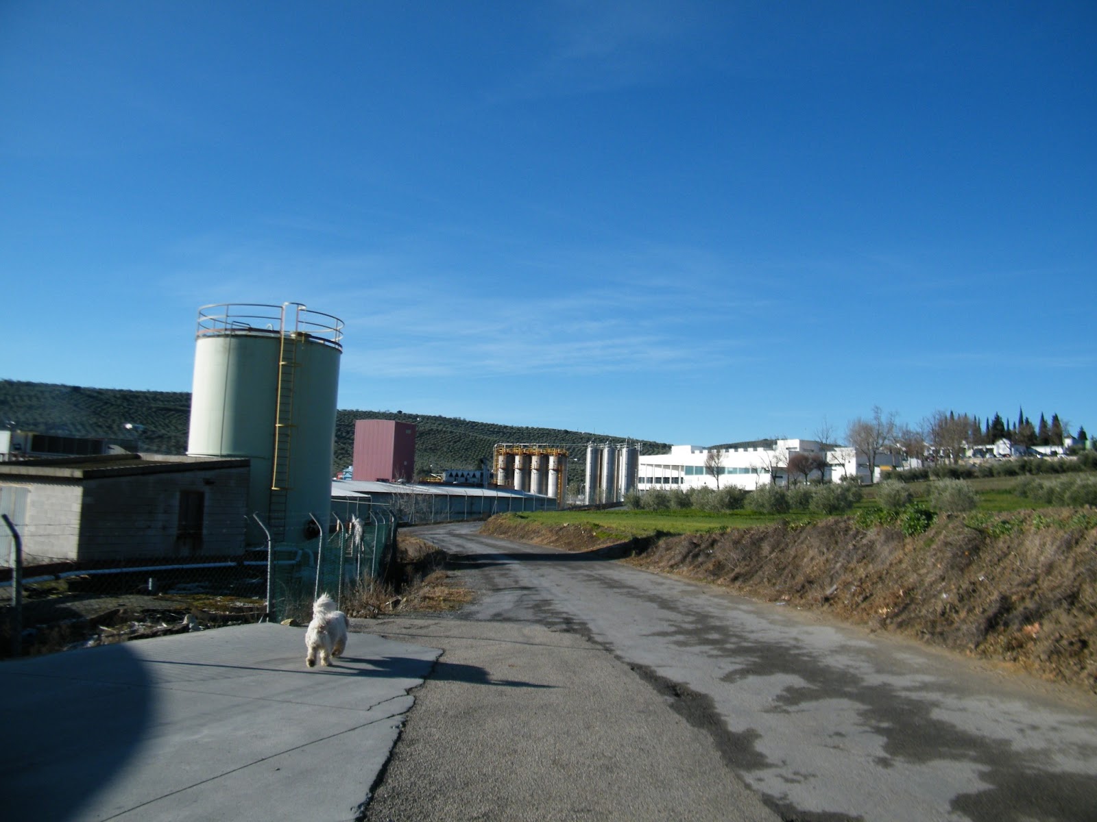 The heartbeat however, comes from another source. It's the large factory whose frontage runs along the main road out of the town centre towards Priego de Cordoba. It's 'backside' is along the road that Darwin and I take when the weather is too damp to enter the pine forest at the foot of La Mota. I usually only photograph the left hand side of this little road as the factory is not pretty.